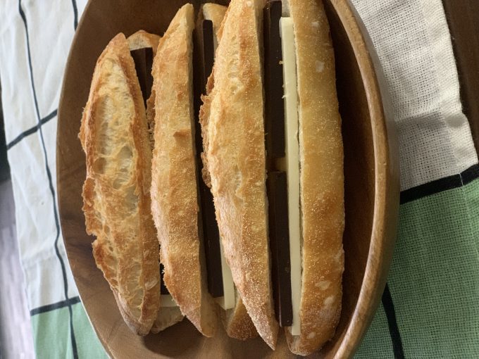小さめフランスパンに、板チョコとバターをサンド。バレンタイン限定。